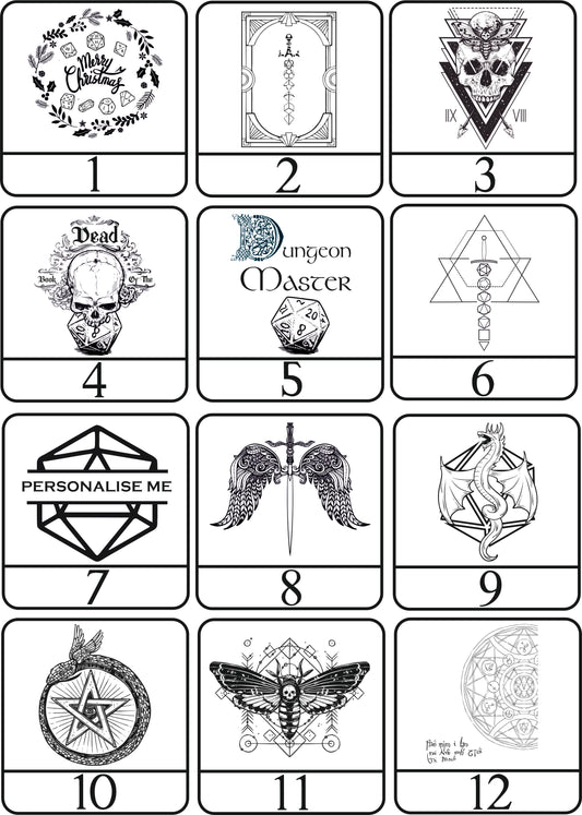 Laser engraved with our popular DnD 5e designs, these are perfect for protecting your gaming table and keeping those errant D20's from rolling off the table and obscuring your critical roll.