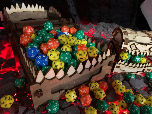 Dice storage solutions from Fandomonium! Hand finished dice boxes in a huge range of designs, colours and finishes. Find something to suit your game, play style and gaming setup today. Full of custom options and personalisation; our dice boxes and dice vaults are truly unique. Perfect for Tabletop Gaming, TTRPG's and dice goblins everywhere!