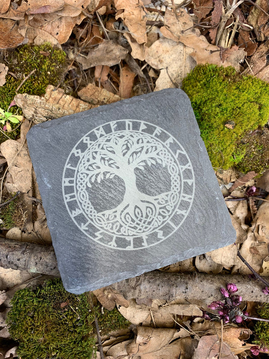Yggdralis Viking Tree Of Life Slate Engraved Coaster