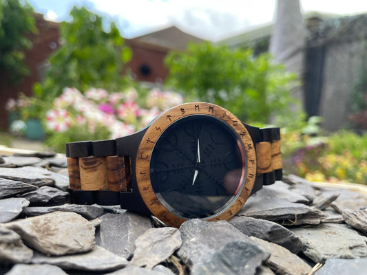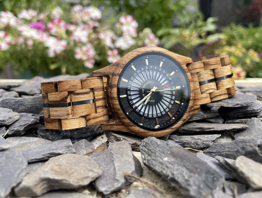 Helm Of Awe Design Zebrano & Black Walnut Wooden Eco Watch