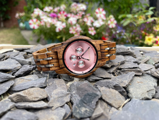 Walnut & Zebrano Interlocking Strap Self Winding Wooden Eco Watch