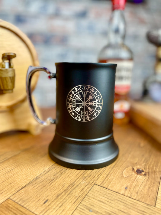 Personalised Viking Style Vegvisir Engraved Stainless Steel Tankard | Viking Compass
