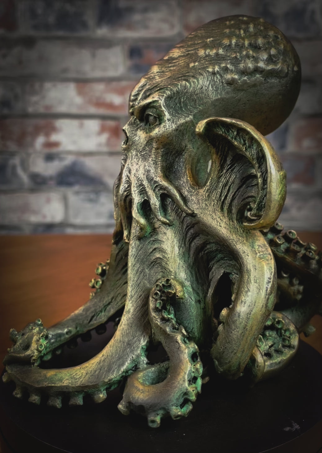Cthulhu, a creature with an Octopus-like head, rubbery-looking body, claws on its feet and narrow wings on its back. It is said to be so ghastly that it destroys the sanity of those who see it. The creature was first introduced in a short story 'The Call of Cthulhu' by H. P. Lovecraft in 1928. Lovecraft depecits the creature as a gigantic entity worshipped by cultists, in the shape of a green octopus, dragon and a caricature of human form. This piece is cast in the finest resin before being expertly hand-painted and would make the perfect addtion to any horror collection.