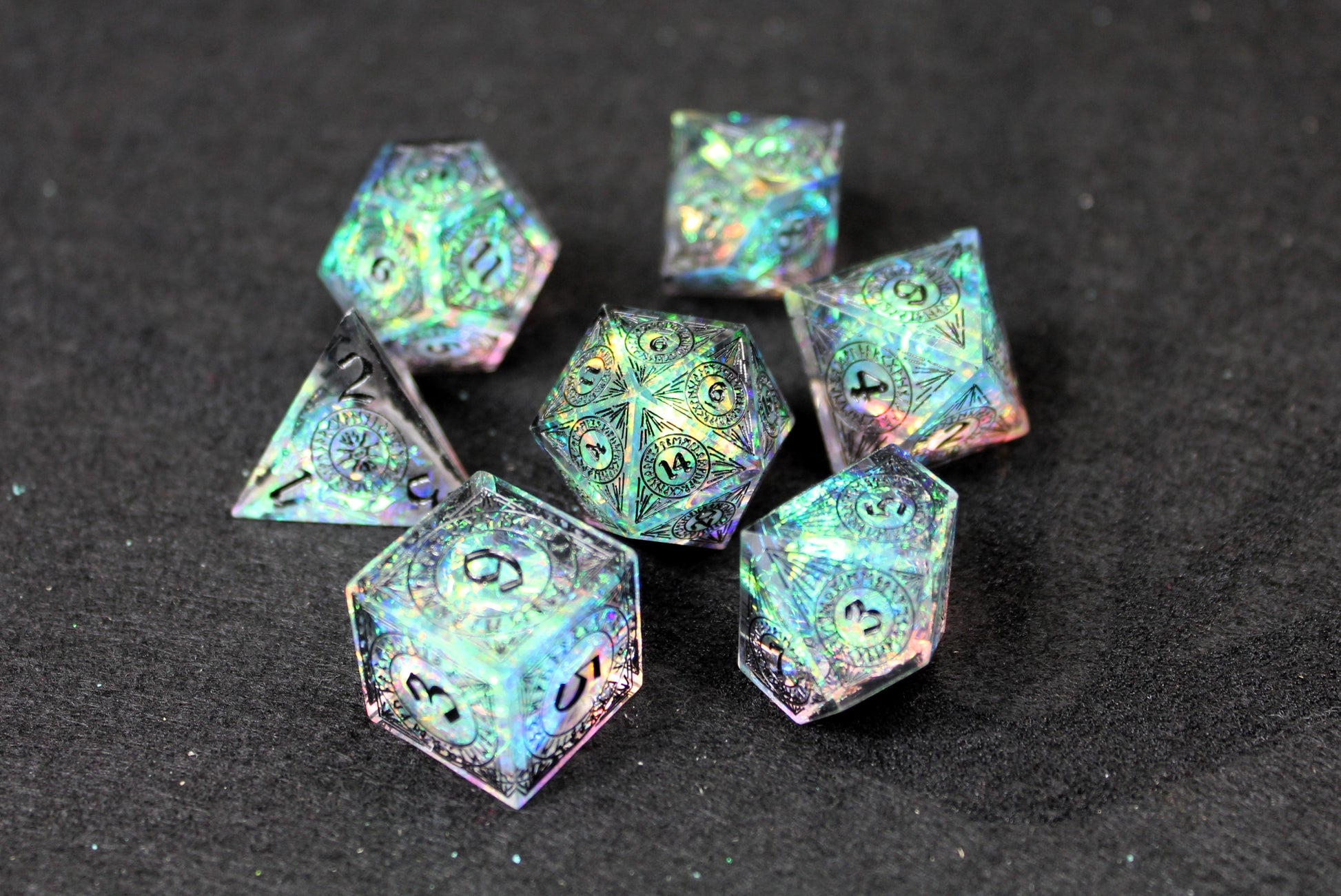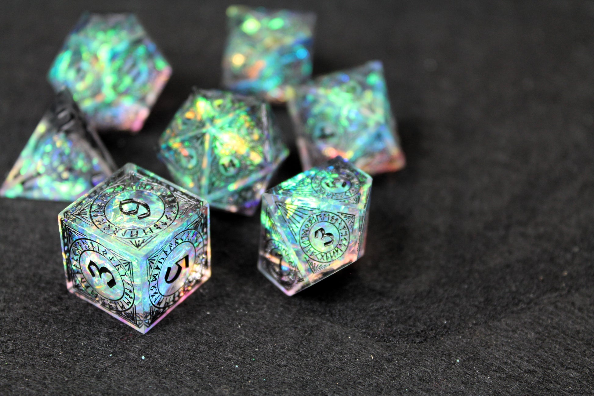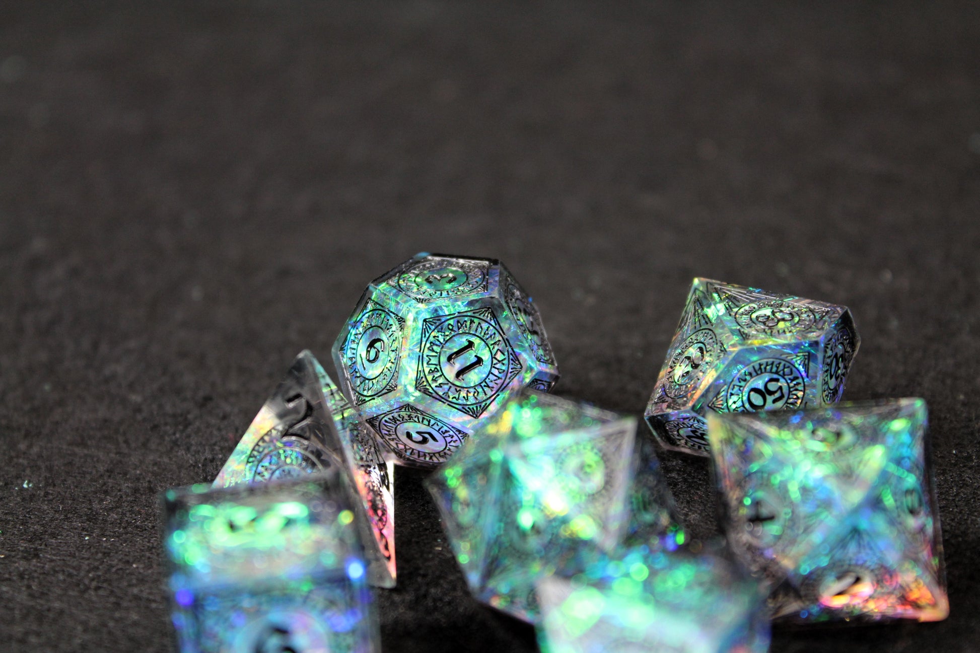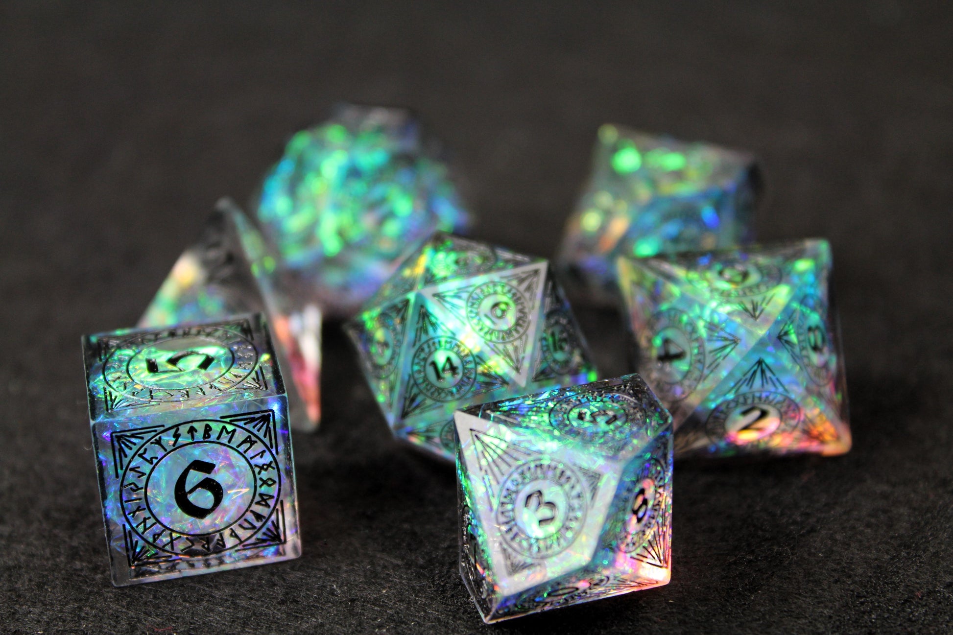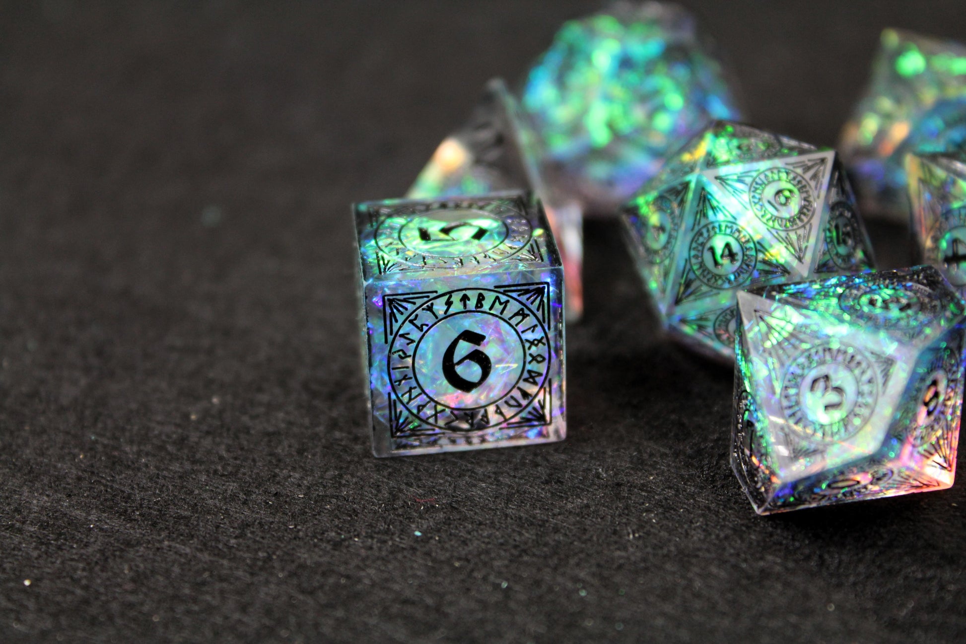 Norse Runes Clear Glitter Sharp Edge Dice Set