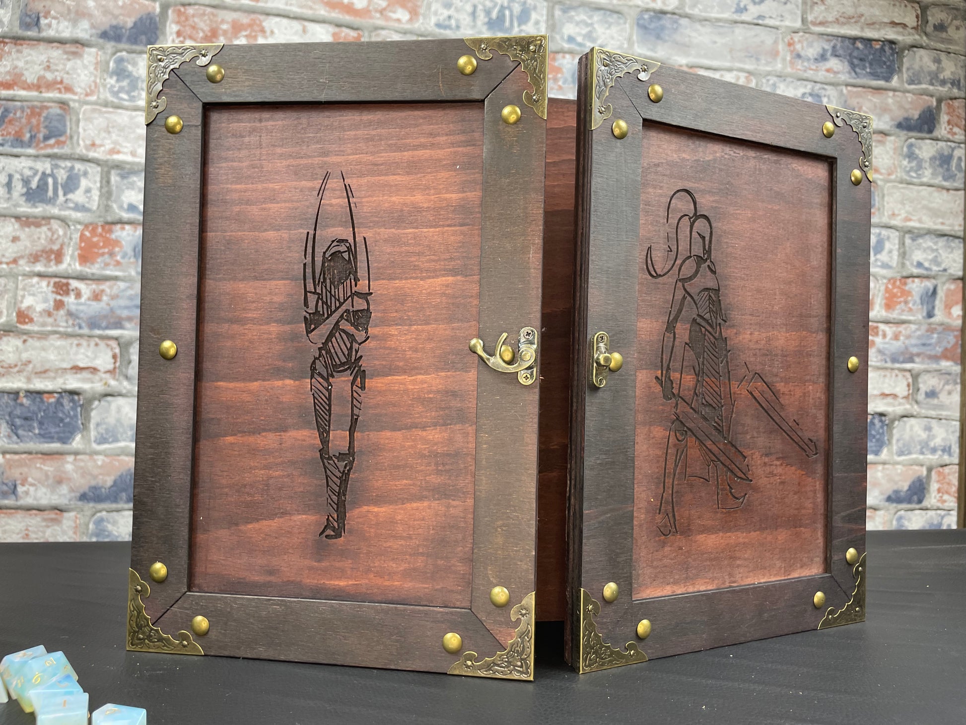 Made to order in your choice of design and colour; our 3 panel DM screens fold together for easy storage and transportation. With our huge choice of character designs you can select a range of images to suit your party, campaign or style.