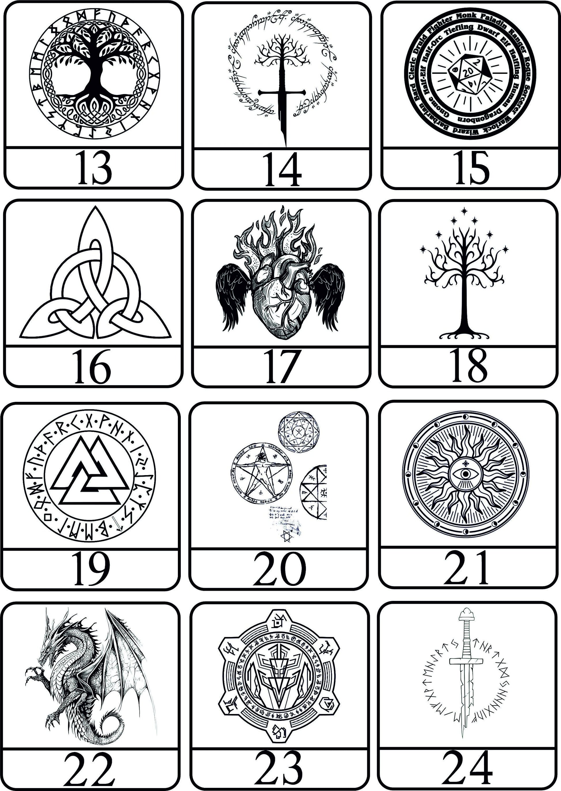 Leather bound refillable notebook/journal. Perfect for campaign notes, character information, sketches, maps and drawings. Available in 4 choice of colour and 24 design options which are engraved onto the leather itself.