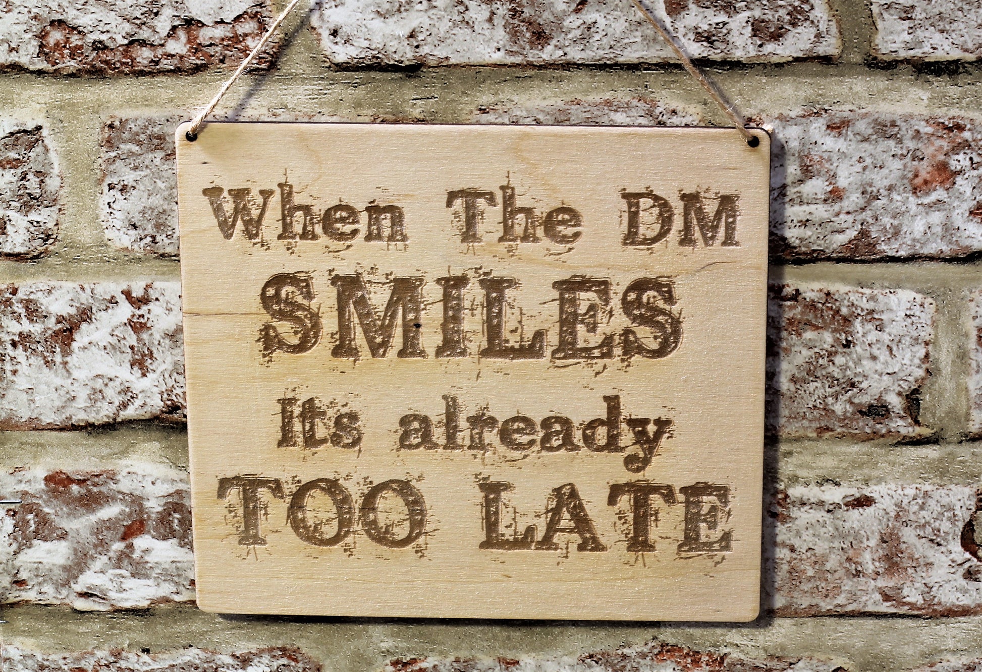When The DM Smiles It's Already Too Late -- Wooden Sign.